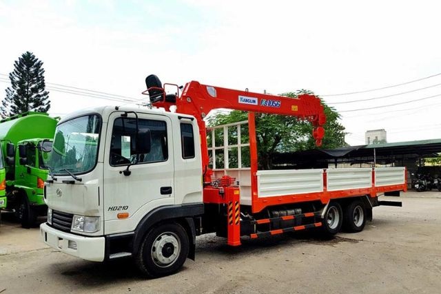 Ưu điểm: Sức nâng mạnh mẽ, hệ thống chân nhện (outriggers) vươn rộng tạo mặt chân đế cực kỳ vững chắc. Chiều dài thùng lên tới 8m – 9m, chở được các loại ống thép dài, thép cuộn hoặc container 20 feet. Phù hợp cho các khu công nghiệp tại Tân Bình, Tân Tạo hay Củ Chi.