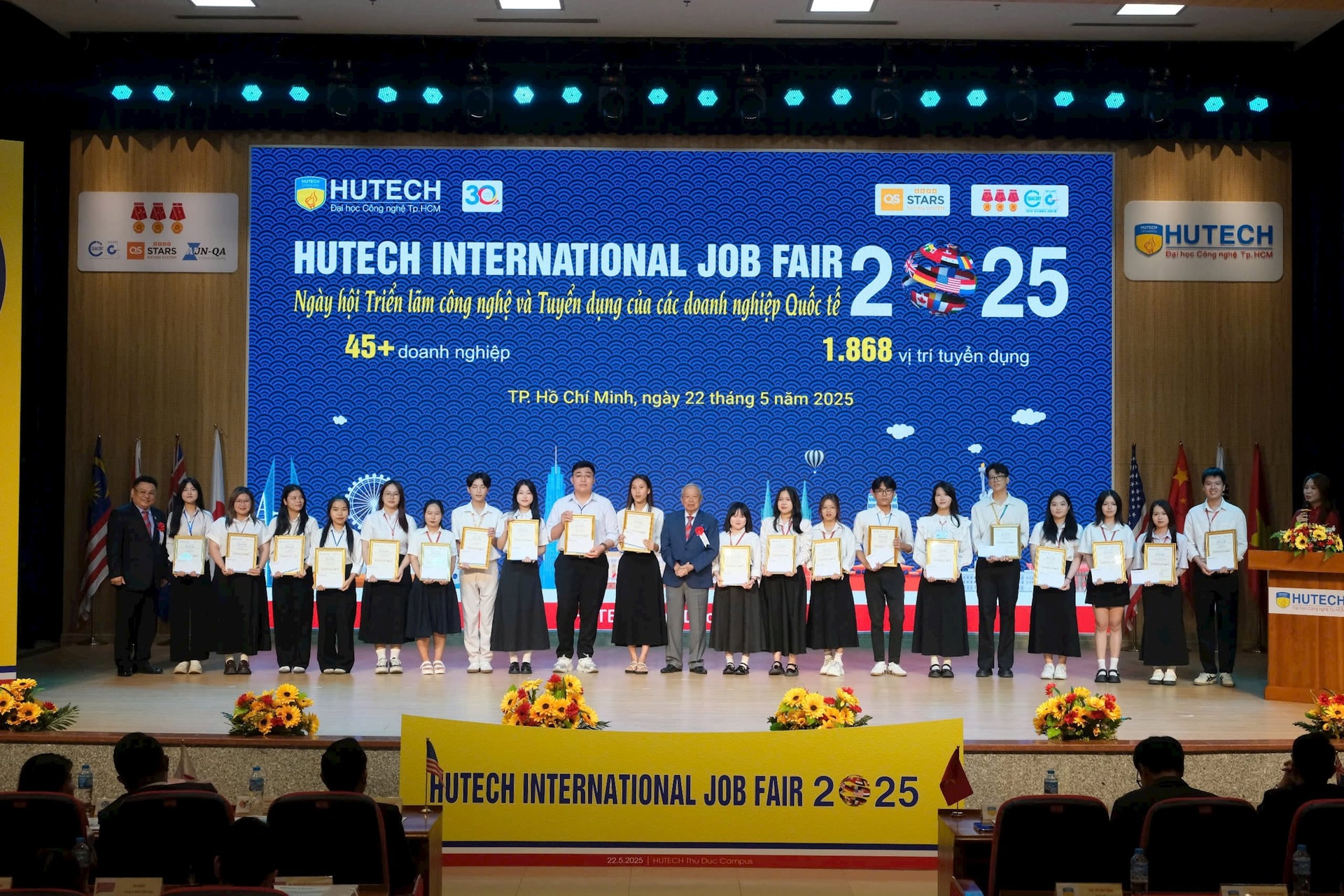 Trong khuôn khổ của sự kiện, Ban Tổ chức cũng dành thời gian tri ân các doanh nghiệp tài trợ và đồng hành cùng Ngày hội. Sự hỗ trợ này không chỉ góp phần nâng cao tỷ lệ sinh viên HIU có việc làm sau tốt nghiệp mà còn nâng cao uy tín và chất lượng đào tạo của nhà trường.